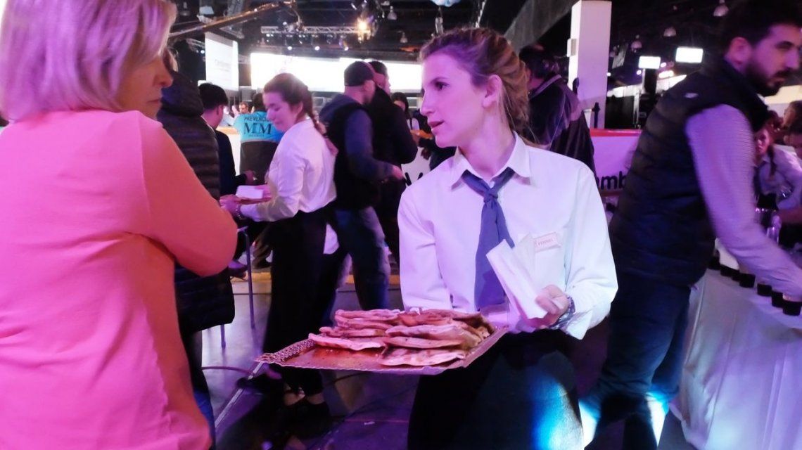 Con una presentación más festiva, en el bunker de Cambiemos en Costa Salguero, la fuerza oficialista presentó pizza y algunos canapés.