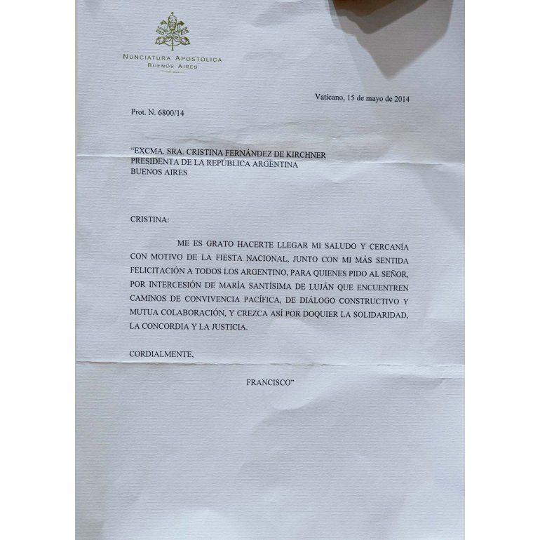 La carta incurre en una falta de letra -'argentino" en lugar de "argentinos"-, tutea a la presidenta y está fechada el 15 de mayo, una semana después de haber sido supuestamente expedida desde el Vaticano.