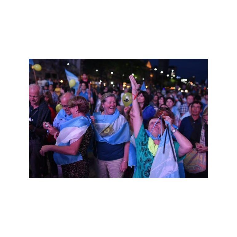 Tras conocerse los primeros datos oficiales que daban cuenta de la victoria del líder del PRO frente al postulante del Frente para la Victoria, Daniel Scioli, unas 200 personas se reunieron en la Plaza de la República con banderas argentinas y aclamando al mandatario electo.