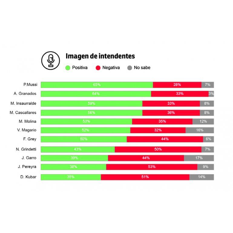 De hecho, al ser consultados por el intendente de su distrito, los encuestados calificaron a Mussi como el de mejor imagen con un 65%, seguido muy de cerca por Granados (64%), Cascallares (56%) y Magario (52%).