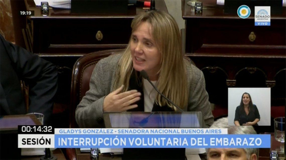 La senadora bonaerense Gladys González se quebró al final de su discurso, donde se explayó sin rodeos en favor de la legalización del aborto durante el debate en el Senado.