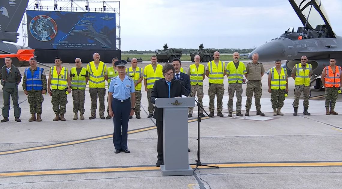 Milei cuestionó también la gestión de las administraciones anteriores en materia de defensa. "Esta incorporación de los F-16 es fundamental, porque los gobiernos anteriores nos habían dejado sin defensas. Nuestro gobierno, en cambio, está decidido a rectificar décadas de destrato hacia nuestras queridas Fuerzas Armadas, destrato que fue motivado por intereses ideológicos y partidarios”, sostuvo.