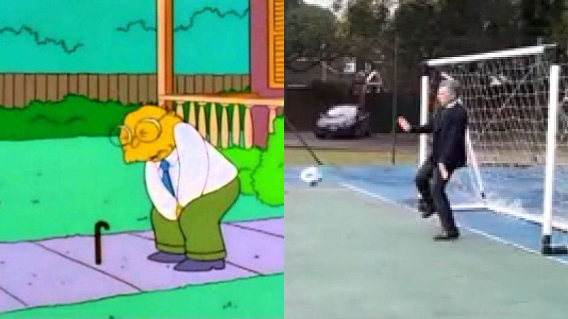En el momento en el que uno de los niños le pateó un penal, la pelota impactó de lleno en la ingle del jefe de Estado que intentó disimular el golpe con una sonrisa.