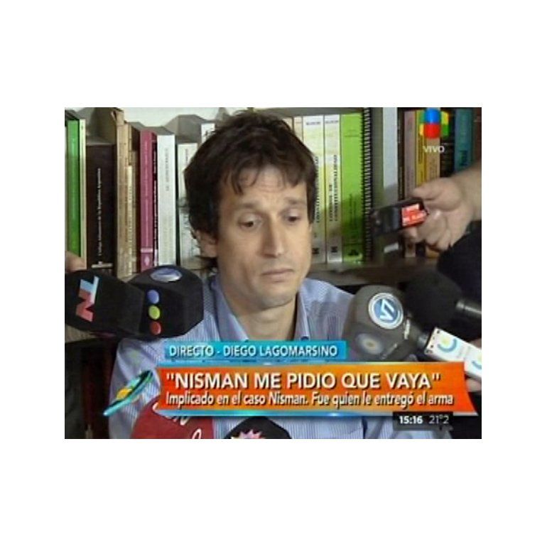 Lagomarsino y su abogado brindan una conferencia de prensa en el estudio de Rusconi, ubicado en Avenida Córdoba 838 piso 2 oficina 4, luego de que sea imputado el joven por la fiscal del caso Viviana Fein por haberle hecho entrega de su arma calíbre 22 al fiscal Nisman.