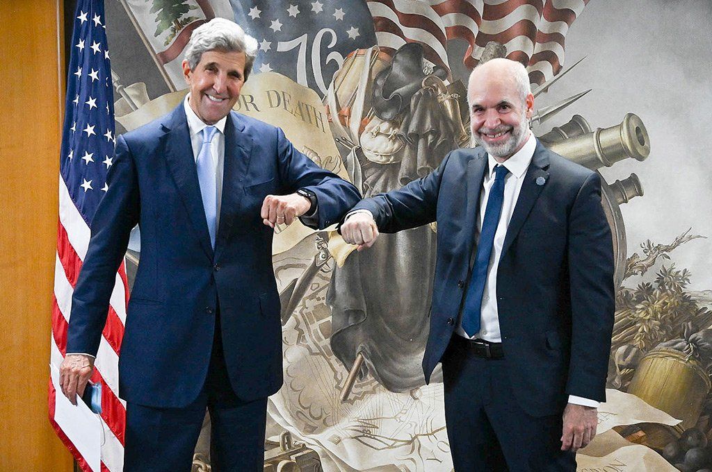 Durante el primer día de su gira oficial por Estados Unidos, el mandatario porteño mantuvo un encuentro con con Kerry, enviado especial para el Clima del gobierno de Joe Biden y exsecretario de Estado de la gestión de Barack Obama, y lo invitó formalmente a participar de la Cumbre de Alcaldes C40, encuentro de ciudades en materia de cambio climático, que se realizará en Buenos Aires en 2022.