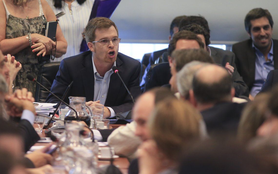El ministro de Trabajo, Jorge Triaca; y su par de Hacienda, Nicolás Dujovne, defendieron la iniciativa oficial en una jornada que se desarrolló en un clima de tensión y fuertes críticas por parte de legisladores de la oposición, gremios y agrupaciones sociales que asistieron al debate.