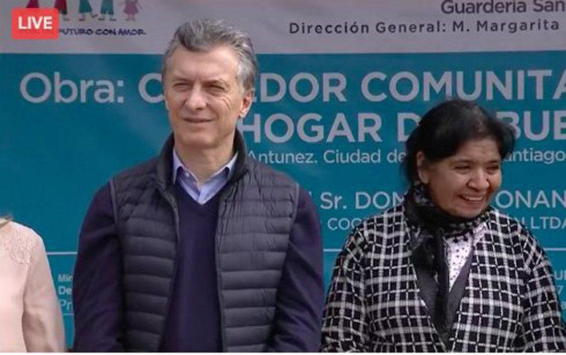 El presidente Mauricio Macri llegó esta mañana a la localidad santiagueña de Añatuya para inaugurar el comedor comunitario “Isidro Antúnez” junto a la gobernadora Claudia Ledesma Abdala; la ministra de Desarrollo Social, Carolina Stanley, y la dirigente social Margarita Barrientos.