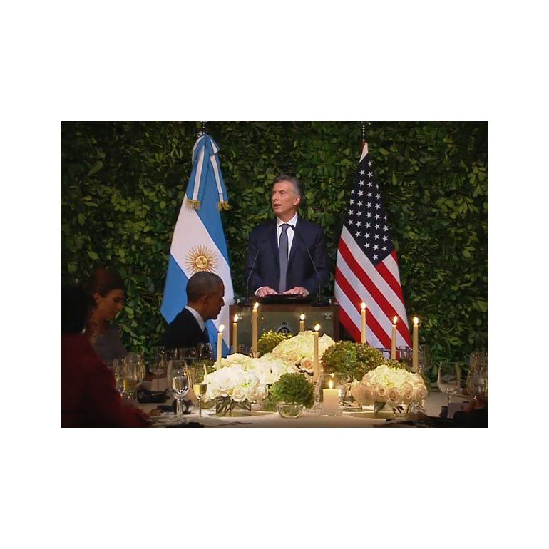 En el marco de la cena de gala en honor al presidente de Estados Unidos, Macri dirigiéndose al mandatario norteamericano destacó que "nuestro país creció con las misma visiones y valores que el suyo".