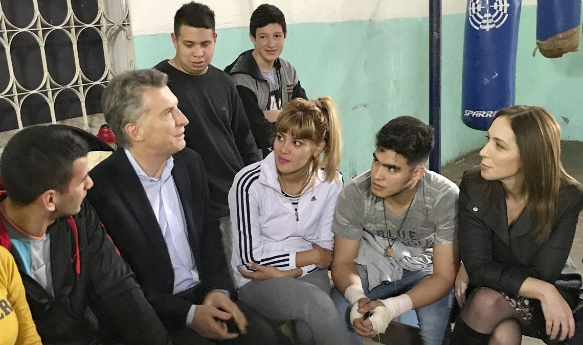 Allí, Macri y Vidal dialogaron con el ex boxeador Luis Verón, quien brinda clases gratuitas de pugilismo a chicos y adultos del barrio.