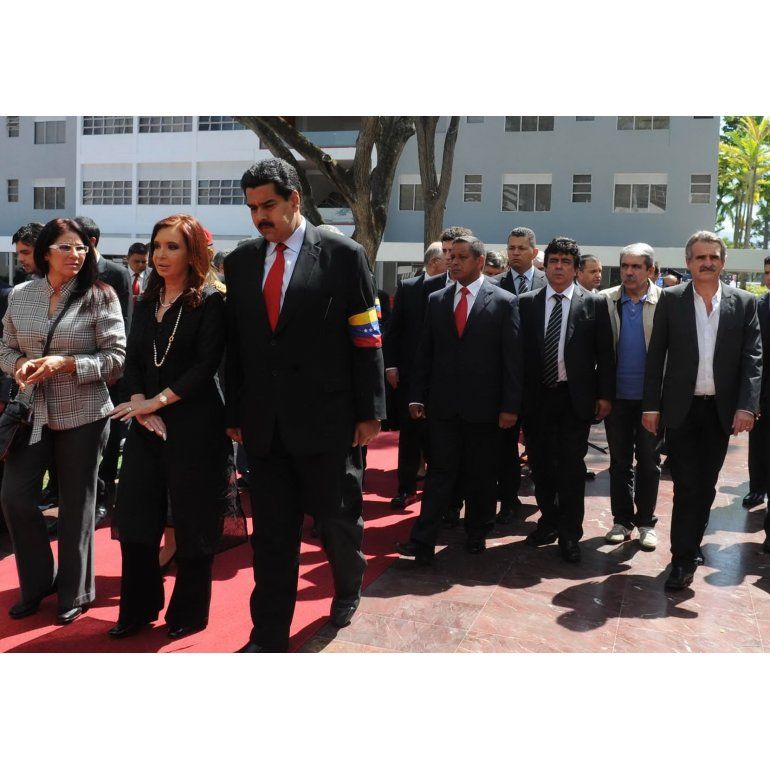 Maduro, quien fue recibido en el Aeroparque por el canciller Héctor Timerman, recordó a "Néstor Kirchner, como hijo de Perón y San Martín y a Hugo Chávez como hijo de Simón Bolívar".