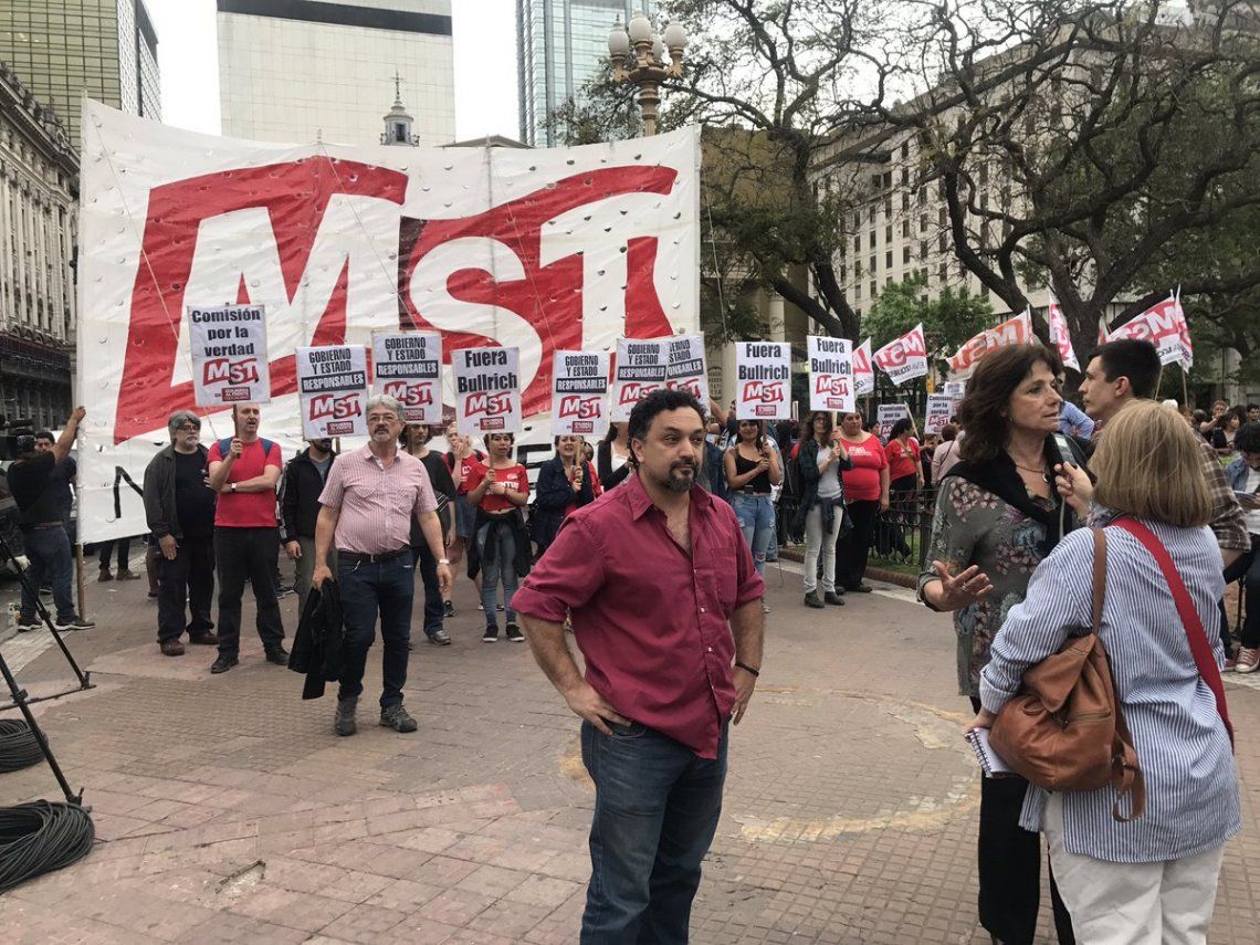 Los manifestantes del MST fueron la columna mayoritaria que ingresó a la Plaza desde Diagonal Norte con carteles que pedían la renuncia de la ministra de Seguridad, Patricia Bullrich.