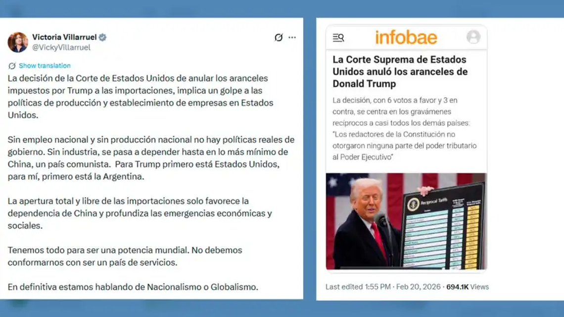 "Sin empleo nacional y sin producción nacional no hay políticas reales de gobierno", afirmó, en un mensaje la vicepresidente,, subrayando que la eliminación de barreras comerciales "puede profundizar la dependencia económica y afectar la industria nacional".