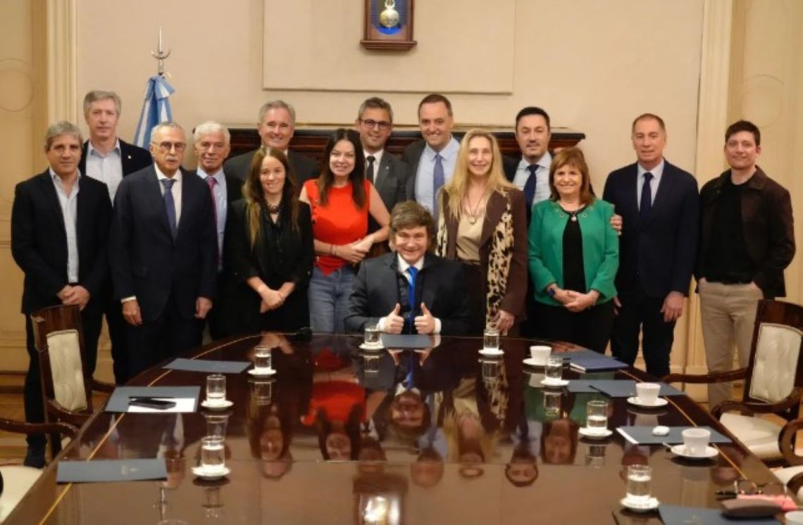 También estuvieron presentes las secretarias Karina Milei (general de la Presidencia) y María Ibarzabal Murphy (Legal y Técnica). Además, el titular de la Cámara de Diputados, Martín Menem; el titular de la Banco Central de la República Argentina, Santiago Bausili; y el asesor presidencial, Santiago Caputo.