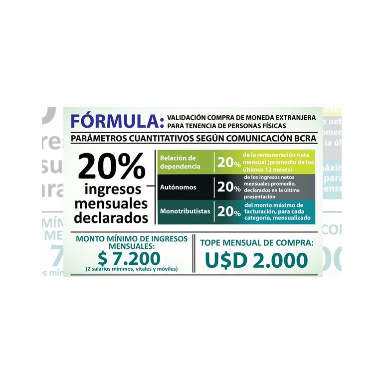 "Todos los trabajadores registrados en relación de dependencia, autónomos o monotributistas inscriptos en la AFIP, en función del ingreso mensual, habitual y permanente" podrán acceder a la compra de divisa extranjera.