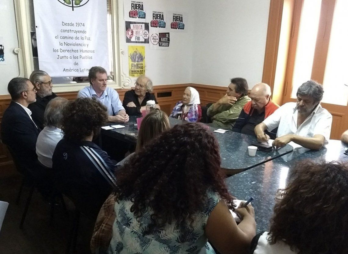 El primer encuentro se desarrolló esta mañana durante una hora en la sede del Servicio de Paz y Justicia (Serpaj), en Piedras al 700, adonde concurrieron el jefe de Gabinete del Ministerio de Seguridad, Gerardo Milman, y Daniel Barberis, director de Violencia Institucional de la cartera que conduce Patricia Bullrich, a cargo del operativo que custodiará la Cumbre.