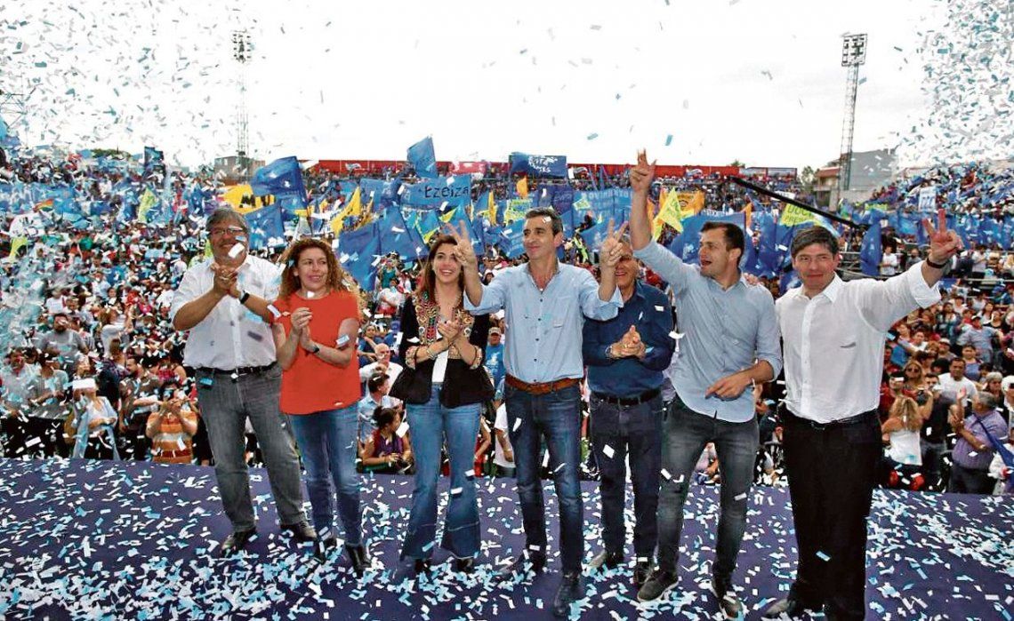 Sobre el escenario lo acompañaban la también candidata a senadora nacional Florencia Casamiquela; el primer candidato a diputado nacional, Eduardo “Bali” Bucca (intendente de Bolívar), y el también candidato Juan Manuel Abal Medina, además del dirigente sindical de la UOCRA y candidato a primer concejal por La Matanza, Heraldo Cayuqueo.