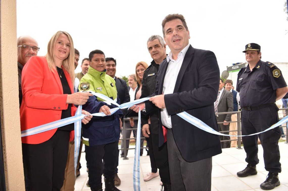 El funcionario provincial estuvo acompañado por la intendenta Fernanda Antonijevic y el jefe de la Policía, comisario general Fabián Perroni, con quienes recorrió la flamante dependencia.