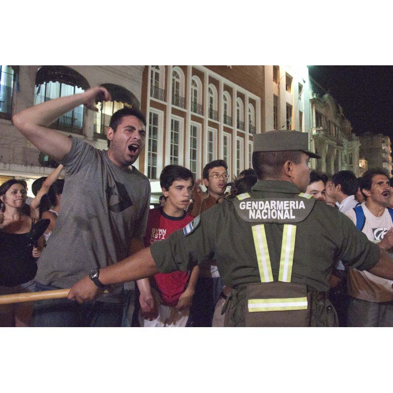 Previamente, los alrededores de la Casa de Gobierno de Tucumán fue escenario de graves incidentes con un grupo de "caceroleros", que fueron dispersados por efectivos de la Guardia de Infantería con gases lacrimógenos y balas de goma.