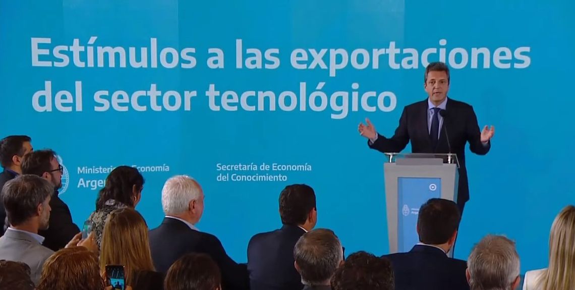 El ministro de Economía, Sergio Massa, afirmó que "esperamos que el sector de la economía del conocimiento exporte US$ 10.000 millones en 2023 y se consolide como el tercer complejo exportador de la Argentina".