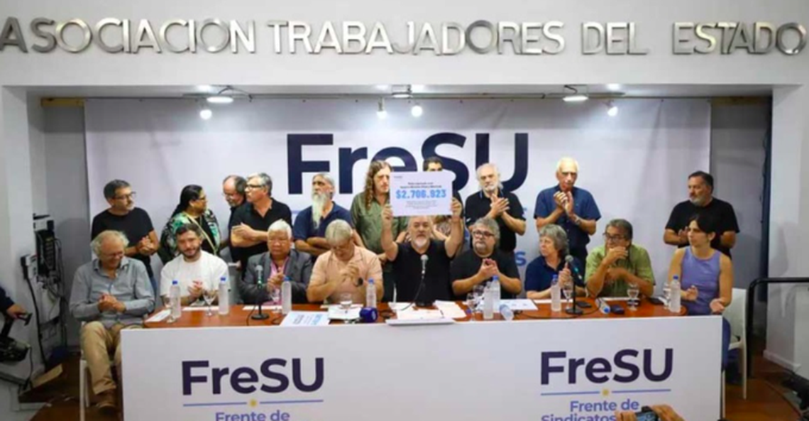 “Tiene que servir para seguir afianzando y consolidando el FreSU. Nos tenemos que encontrar, nos tenemos que mezclar porque el ajuste lo sufrimos todos. La destrucción de los salarios y de los puestos de empleo nos atraviesa tanto al sector público como al sector privado”, señaló Aguiar.