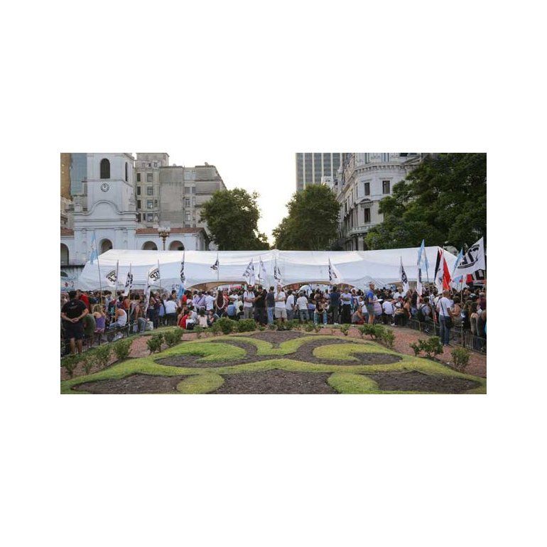 Organizaciones sociales instalaron hoy una carpa en la Plaza de Mayo de la capital argentina en reclamo contra la detención de la diputada del Parlasur Milagro Sala, apresada hace once días en la norteña provincia de Jujuy por "instigación a cometer delitos y tumultos".