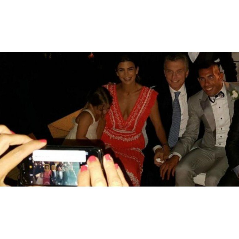 El gran festejo por el casamiento de Carlos Tevez tuvo a un invitado especial. Mauricio Macri, el presidente de la Nación, viajó a Carmelo, Uruguay, para compartir la celebración con uno de los ídolos de Boca y Vanesa, su mujer. Acompañado por Juliana Awada, de buen humor, se animó a bailar cumbia con la agasajada.