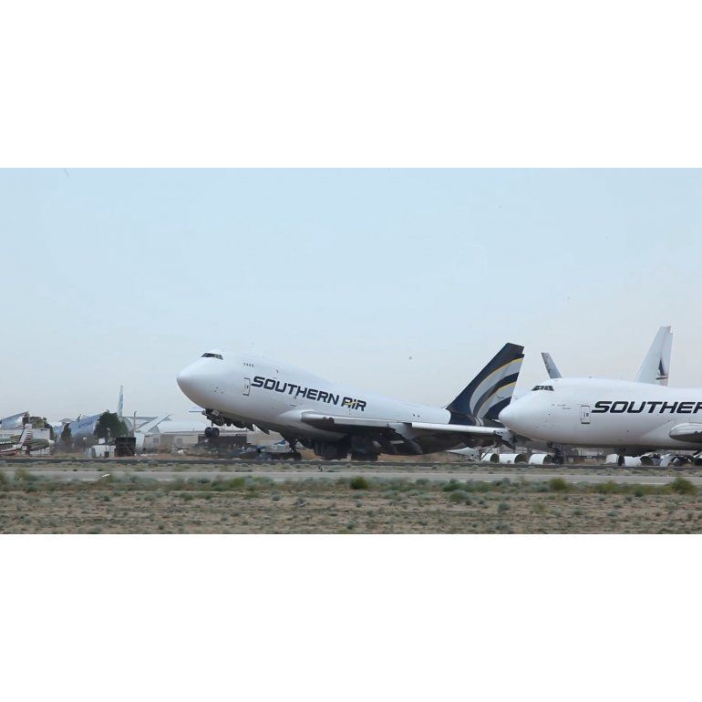 Sin el peso de sus motores, el 747parece querer ascender al cielo por última vez..