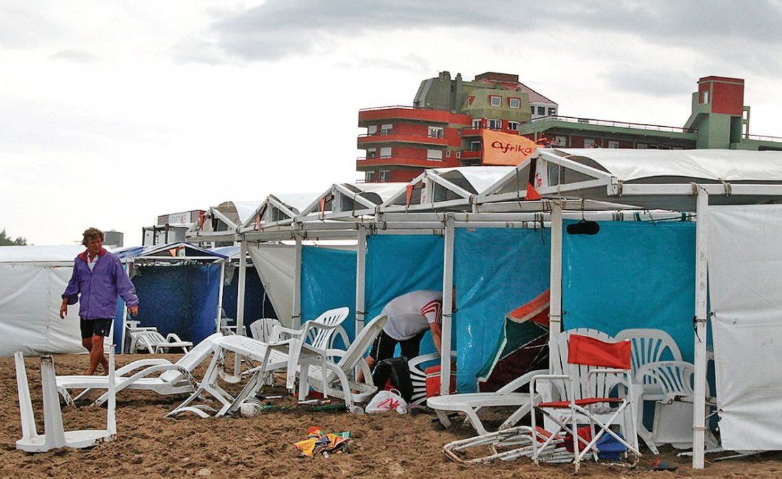 Unos minutos más tarde, cuando empezaron a caer unas gotas, los empleados de los balnearios iniciaron la rutina de “armar las carpas”, como llaman a la actividad de volver a ordenar las ubicaciones que van quedando desocupadas. Algunos turistas seguían en el mar, otros empezaron a levantar campamento, mientras que varios eligieron guarecerse de la lluvia bajo el techo del alguna carpa “a esperar que pasara”.