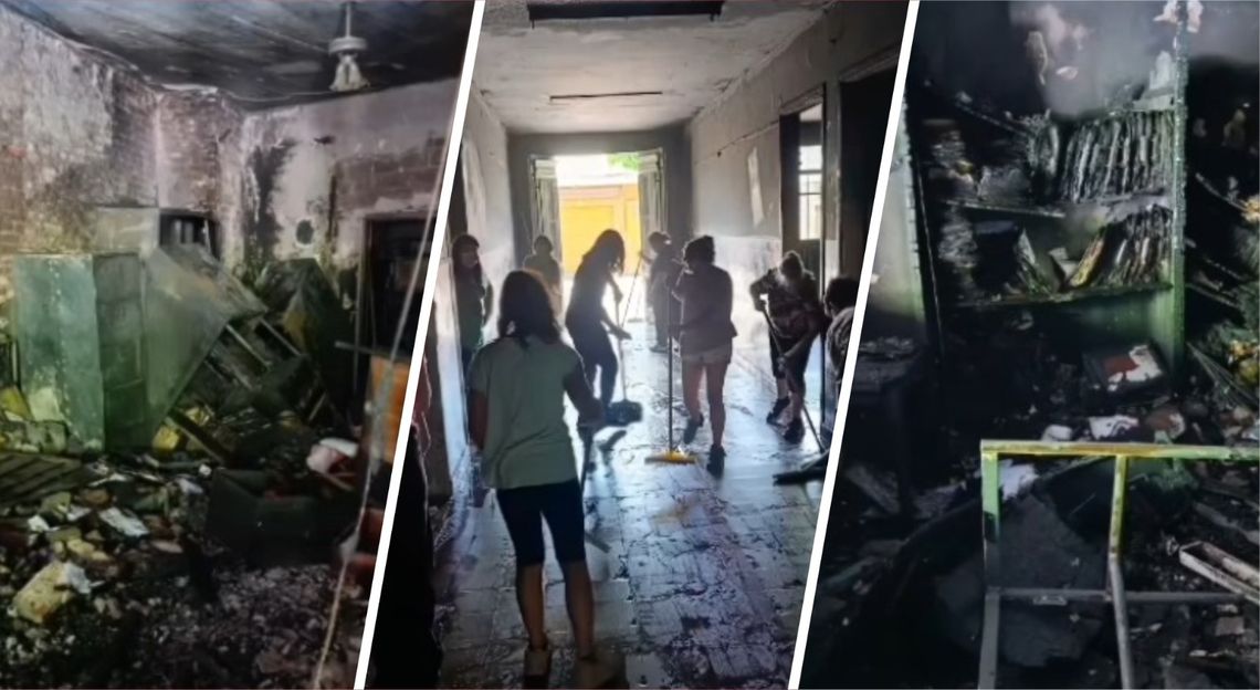 Adolescentes provocaron un incendio intencional y no robaron nada. Pese a las importantes pérdidas, docentes, alumnos y familias trabajan conjuntamente en tareas de limpieza y restauración.