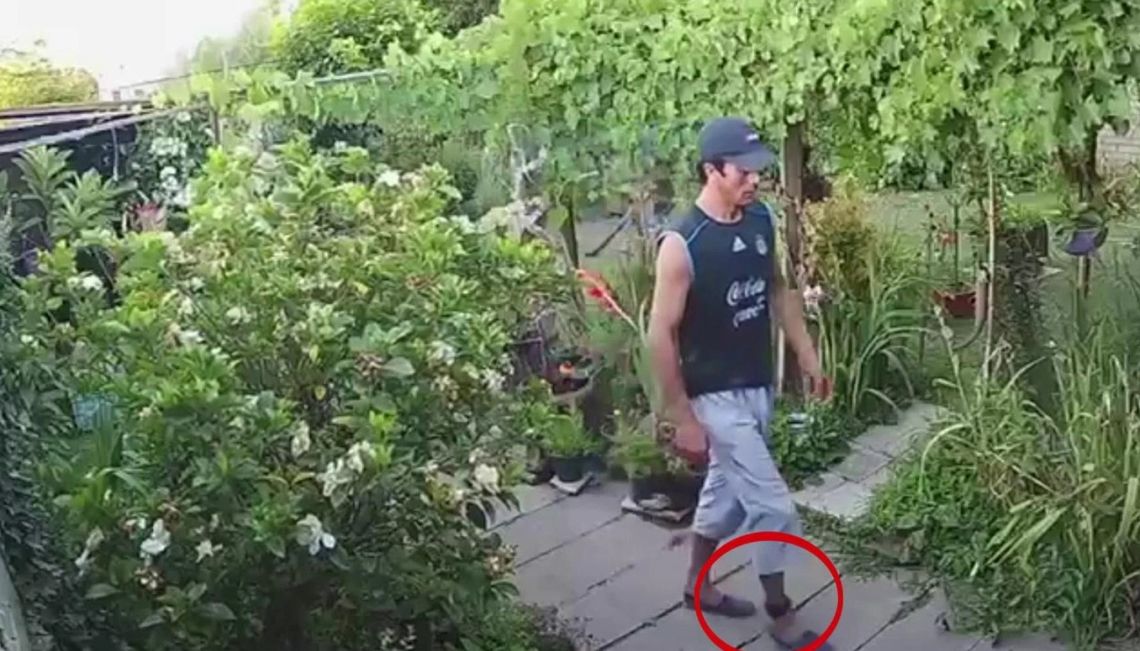 El hecho ocurrió en una casa ubicada sobre la calle 14, entre 103 y 105, en una zona residencial de Balcarce. En las imágenes se observa a un hombre vestido con bermuda, musculosa y alpargatas que ingresa sigilosamente por el patio trasero, avanza hasta el quincho y toma dos pares de zapatillas antes de retirarse por el mismo lugar, sin ser advertido.
