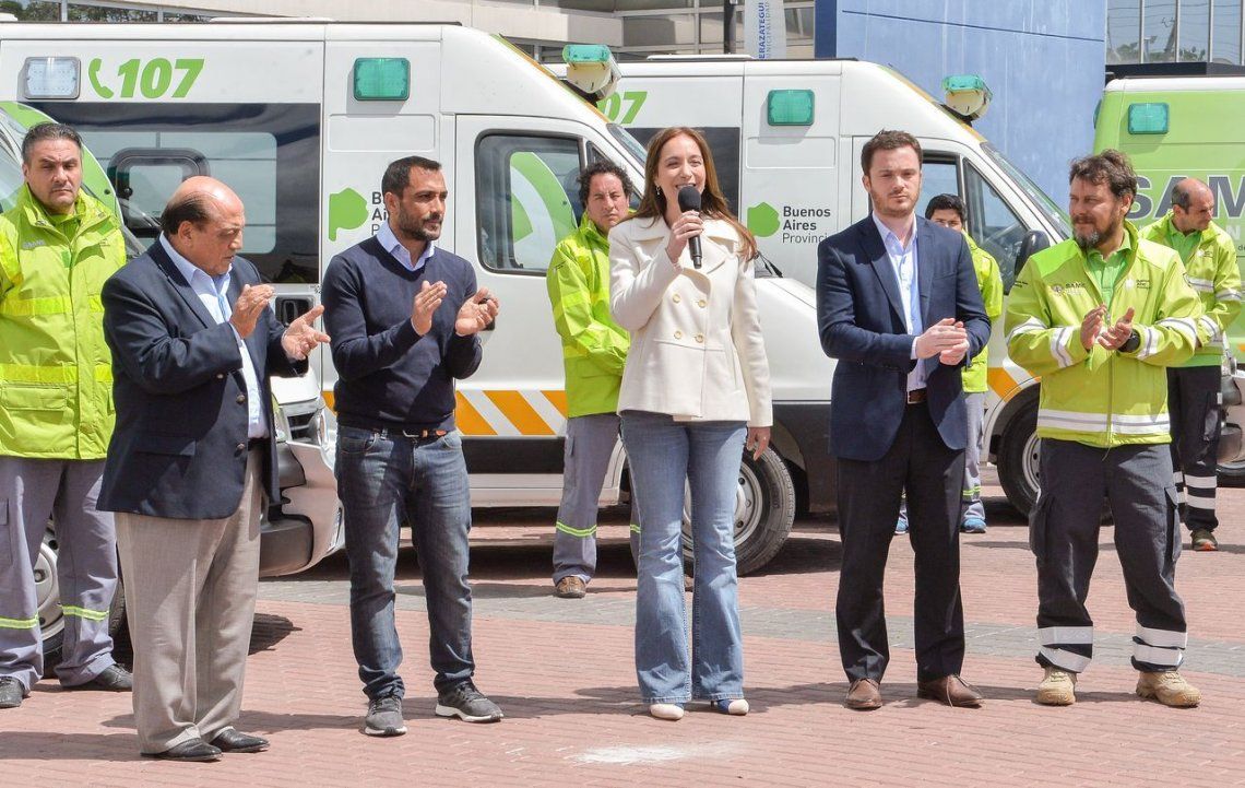 La gobernadora de la Provincia de Buenos Aires, María Eugenia Vidal, y el intendente de Berazategui, Juan Patricio Mussi, dieron comienzo en el distrito al Sistema de Atención Médica de Emergencias (SAME) con la incorporación de 9 ambulancias de alta complejidad y la entrega de 500 uniformes para personal médico, que demandaron una inversión de 56 millones de pesos.