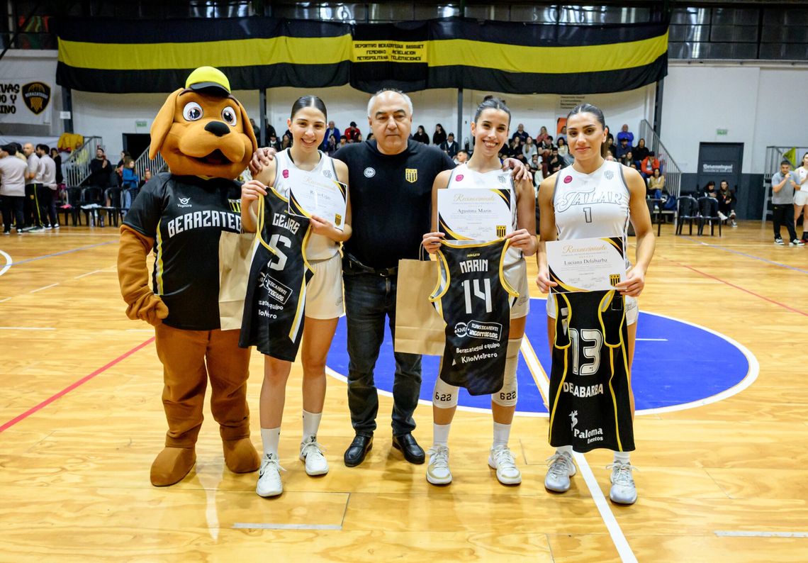 En su última presentación como local en el estadio ubicado en Ducilo, Deportivo Berazategui reconoció, de la mano de sus principales dirigentes, a Luciana Delabarba, Rocío Cejas y Agustina Marín, referentes del proceso que consolidó al club como hexacampeón de la Liga Nacional de Basquet en la rama femenina.