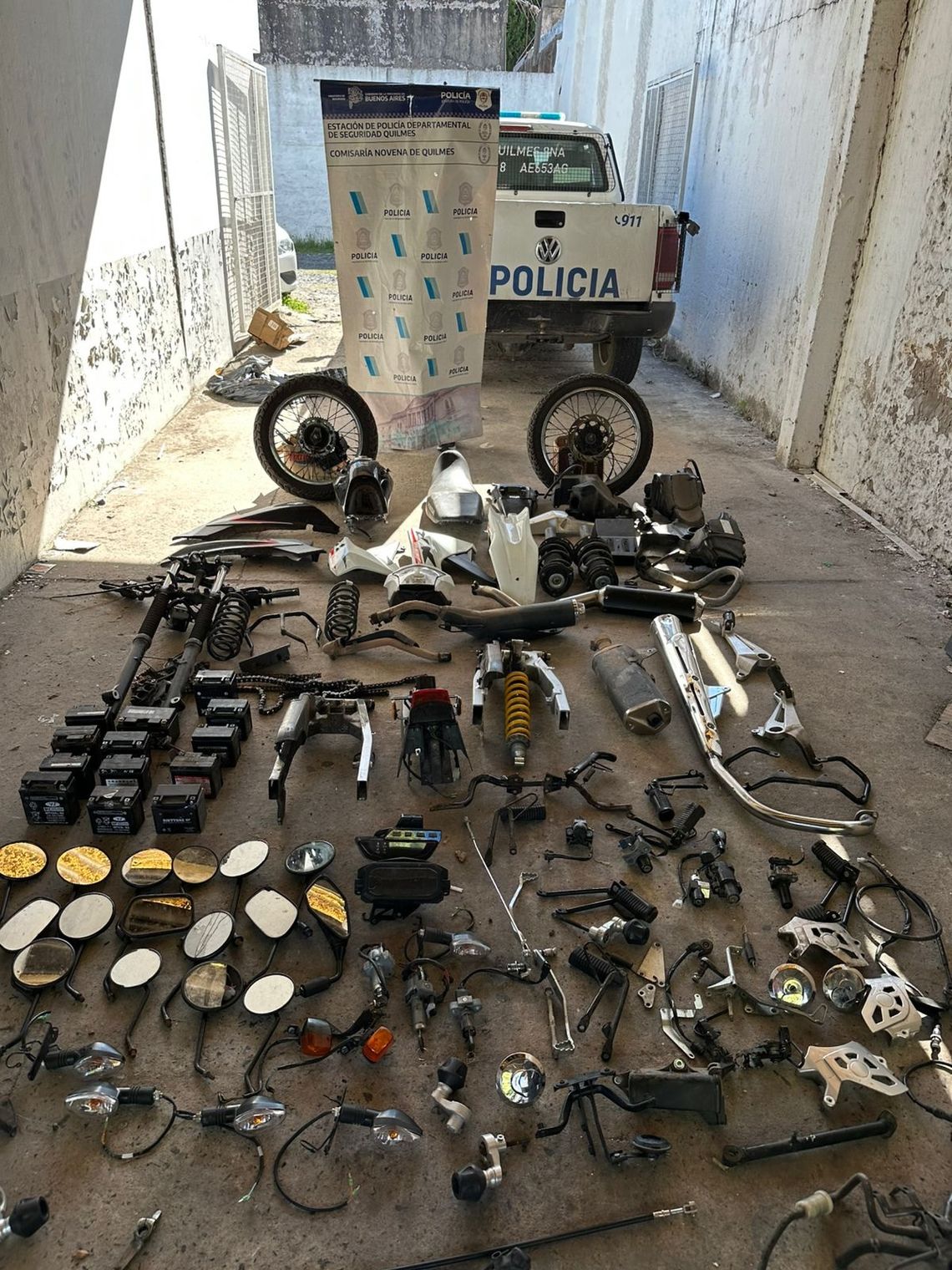 Por otro lado, el desarmadero fue allanado y secuestraron escapes, amortiguadores, espejos, baterías, tableros electrónicos y demás, quedando a disposición de la justicia los imputados responsables del lugar.