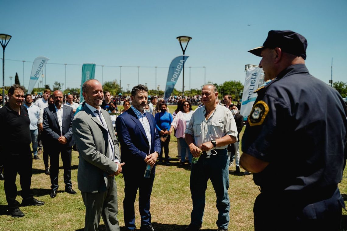 “Hoy es un día muy importante, no solo para Merlo, sino para toda la provincia de Buenos Aires. Nos llena de orgullo que el gobernador Axel Kicillof haya tomado la decisión estratégica de hacer la mayor incorporación y capacitación de efectivos, 20 mil, para toda la provincia de Buenos Aires. Es un orgullo y a la vez representa un gran desafío”, dijo el jefe de Gabinete Martín Insaurralde.