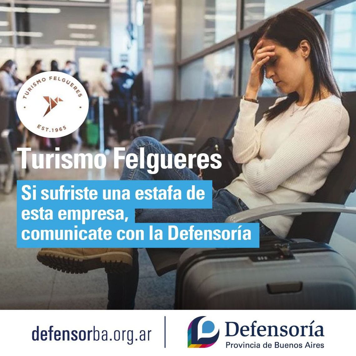 La Defensoría del Pueblo bonaerense, a cargo de Guido Lorenzino, realizó una denuncia penal, tras los reclamos recibidos, contra la empresa Turismo Felgueres por fraude en la venta de viajes.