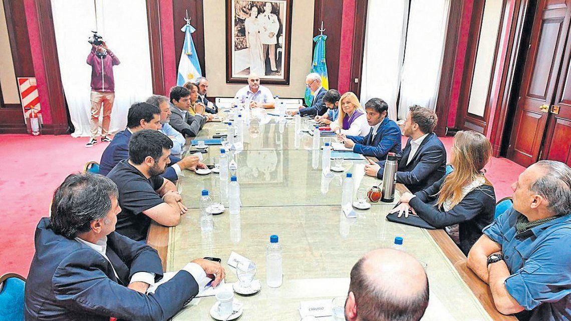 El gobernador bonaerense Axel Kicillof se reunió con las principales autoridades del Poder Legislativo y la oposición apuró propuestas para oxigenar las arcas municipales. Encabezados por los presidentes de ambos Cuerpos legislativos, el diputado Federico Otermín y la vicegobernadora Verónica Magario, la tropa legislativa estuvo integrada por todos los presidentes de bloques, los seis que tiene la Cámara baja y los dos que conforman el Senado.