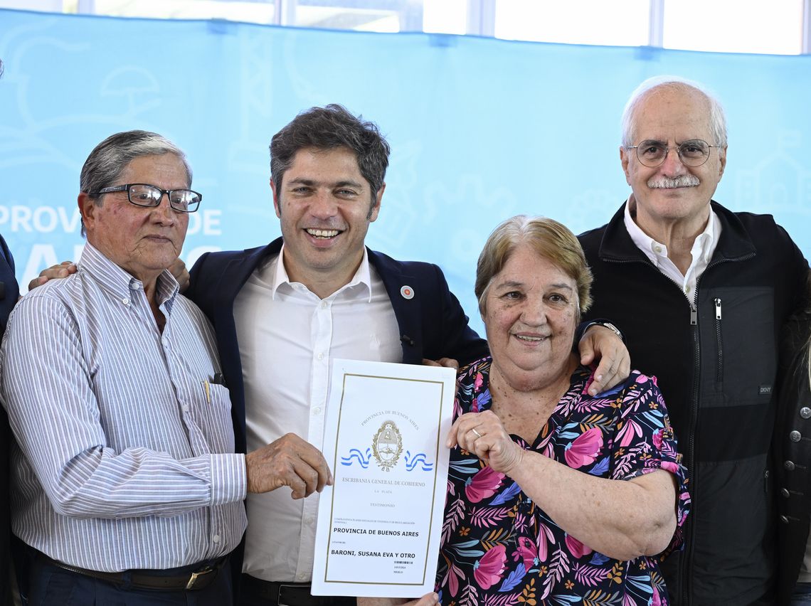 En ese marco, Kicillof afirmó: “Estas escrituras que estamos entregando son un derecho que abre puertas a futuro: cada uno de estos títulos de propiedad es un acto de justicia social”. “Las escrituras pueden conseguirse en el sector privado, pero a un valor inaccesible para la mayoría de las y los bonaerenses: que todos tengan las mismas oportunidades es la base de una sociedad mejor”, agregó.
