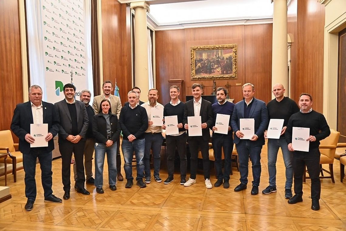 Durante el encuentro, realizado en la Casa Central del Banco Provincia, también participaron la presidenta de Provincia Fideicomisos, Nadia Giardina; el presidente del holding Provincia Servicios Financieros, Ariel Lieutier; y el presidente de Fuerza Solidaria, Juan Cáccamo, junto a los intendentes de los municipios firmantes.