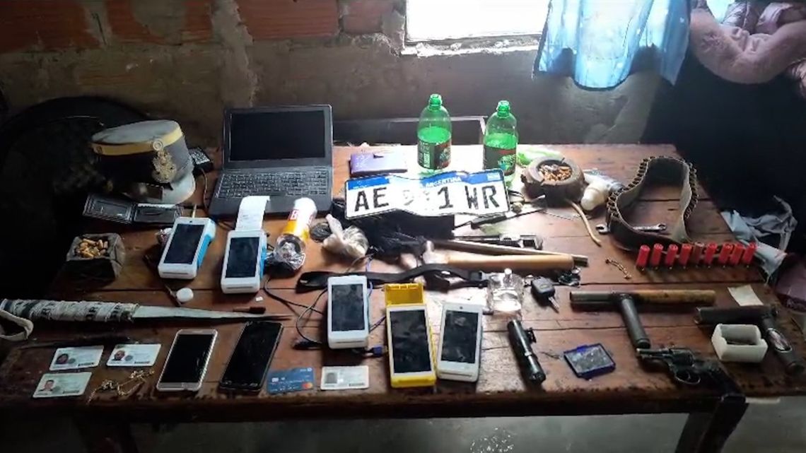 Los uniformados procedieron a ingresar a la propiedad, donde detuvieron a un hombre de 38 años y a dos mujeres de 27 y 20 años, todos oriundos de la zona. Durante el registro del inmueble, se procedió al secuestro de un revólver y un arma de fuego tumbera, municiones de distintos calibres y un cinturón portacartuchos. Además, incautaron cuatro teléfonos celulares y una computadora portátil, un dispositivo posnet, una faca y las llaves del Renault Logan, y una chapa patente correspondiente al vehículo recuperado.
