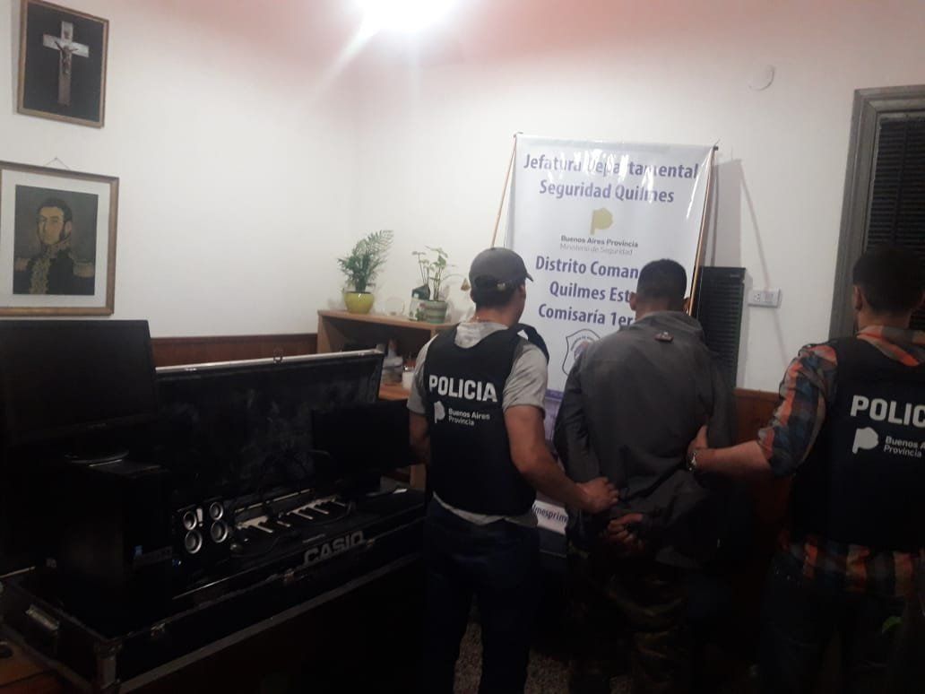 Allí los uniformados hallaron los objetos sustraídos en la institución de Rivadavia 498: un piano eléctrico Casio, dos monitores de computadora, un CPU y parlantes.