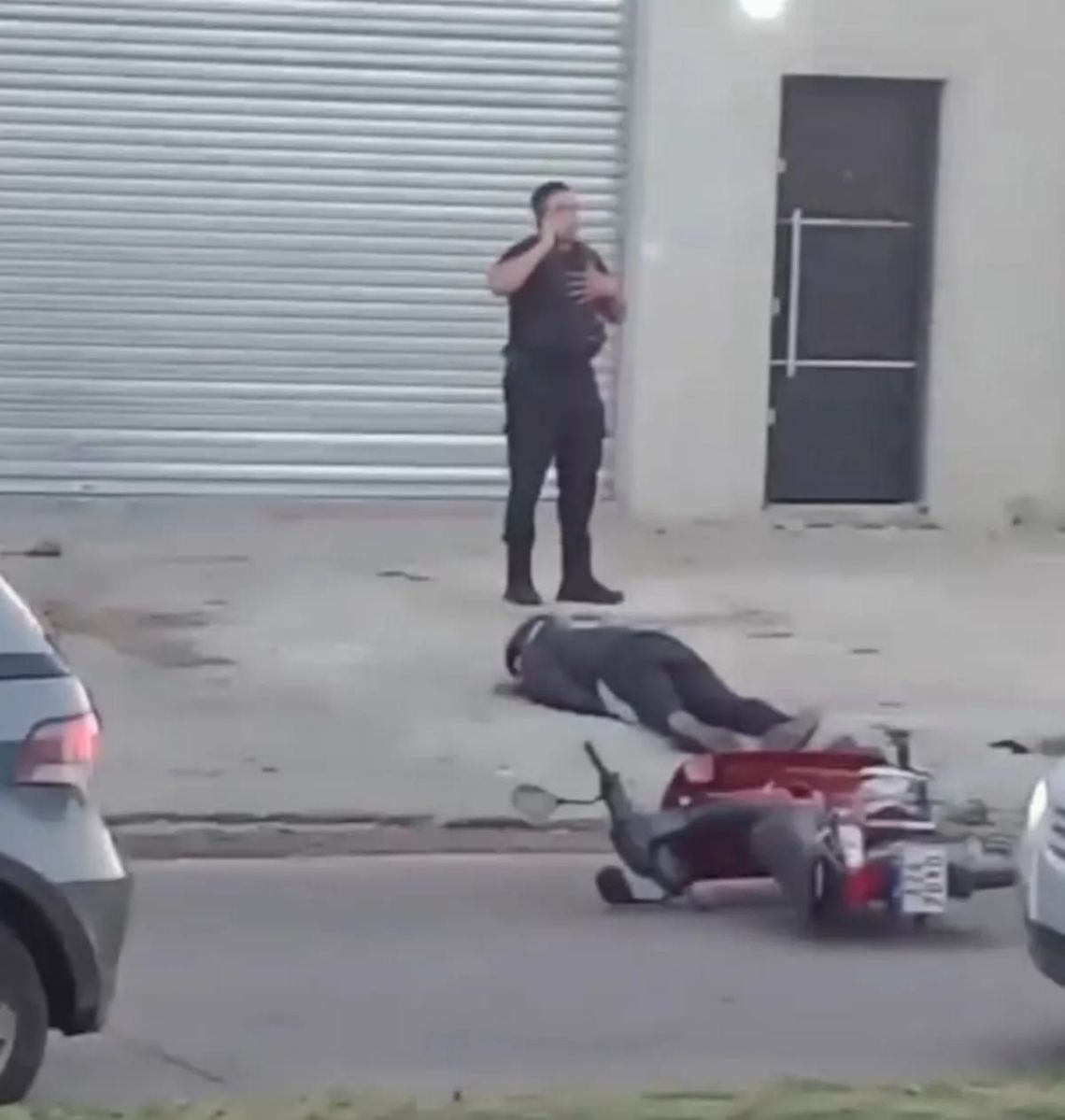 En ese momento, los agentes de seguridad observaron la secuencia y decidieron involucrarse para proteger a la víctima. En ese contexto, se generó un enfrentamiento armado, en el cual uno de los implicados recibió un tiro en la garganta, lo que causó su muerte instantánea en el lugar. El sujeto abatido quedó boca abajo en medio de un charco de sangre.