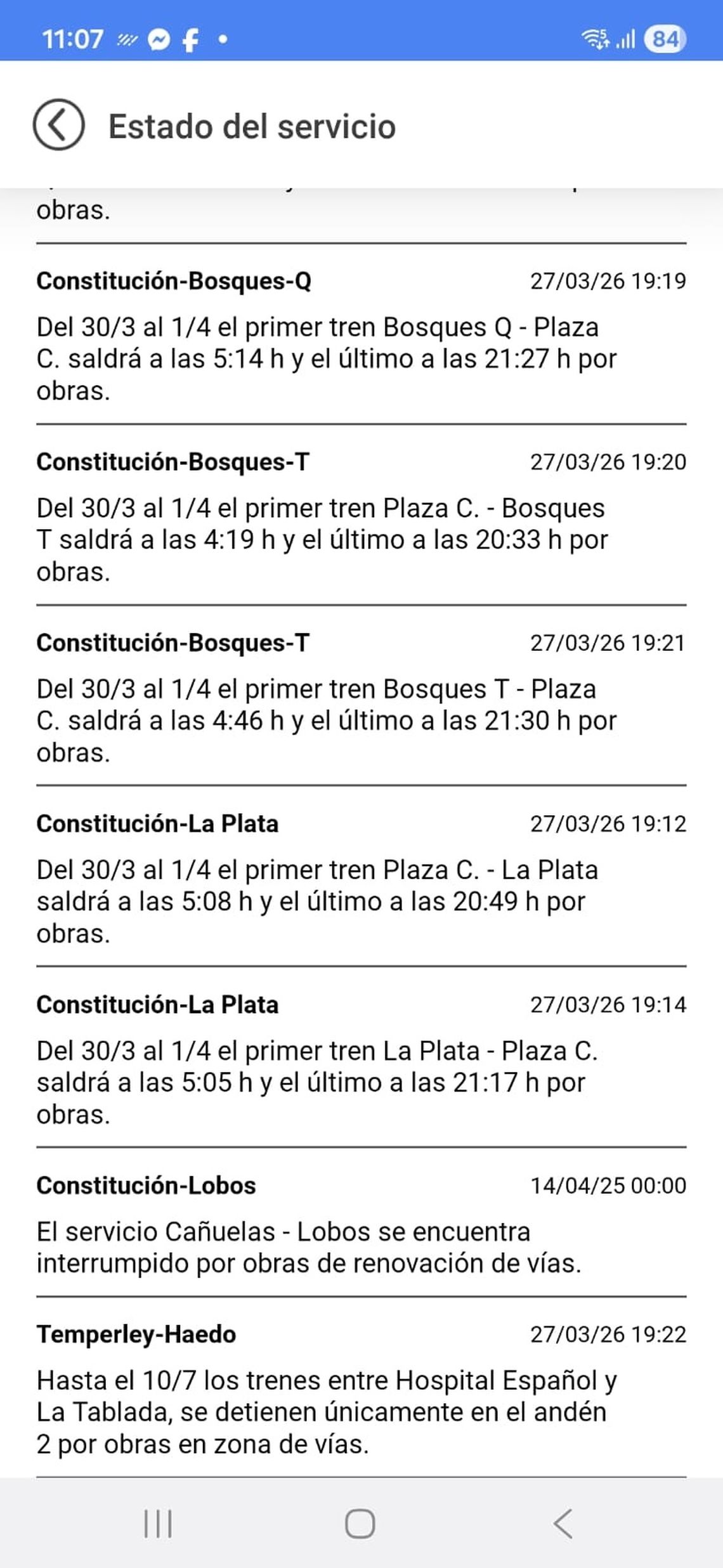Las sumatoria de más de tres meses resulta llamativa, y no hubo ninguna información de la empresa estatal sobre el por qué del nuevo plazo. Y para mayor confusión para los usuarios, en su página web sigue consignado este domingo que la virtual clausura de esa vía entre Empalme Temperley y Tablada finalizaba ayer domingo 28, lo que determina que los trenes que circulan hacia Haedo se detengan en la plataforma 2 en Hospital Español, Santa Catalina, Juan XXIII, Kilómetro 34, Intendente Pedro Pablo Turner (en el partido de Lomas de Zamora), Agustín de Elía y Tablada (en el distrito de La Matanza).