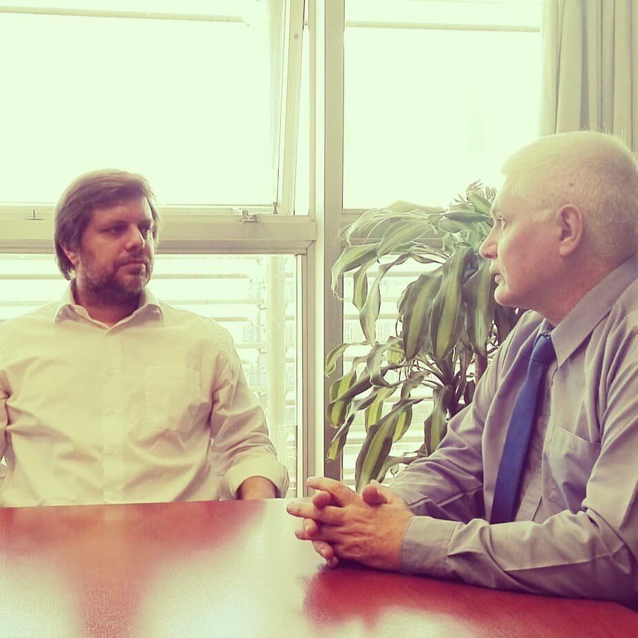 El director ejecutivo del Organismo provincial para el Desarrollo Sostenible, Rodrigo Aybar, mantuvo una reunión de trabajo con el titular de la Red Argentina de Municipios Frente al Cambio Climático, Ricardo Bertolino.