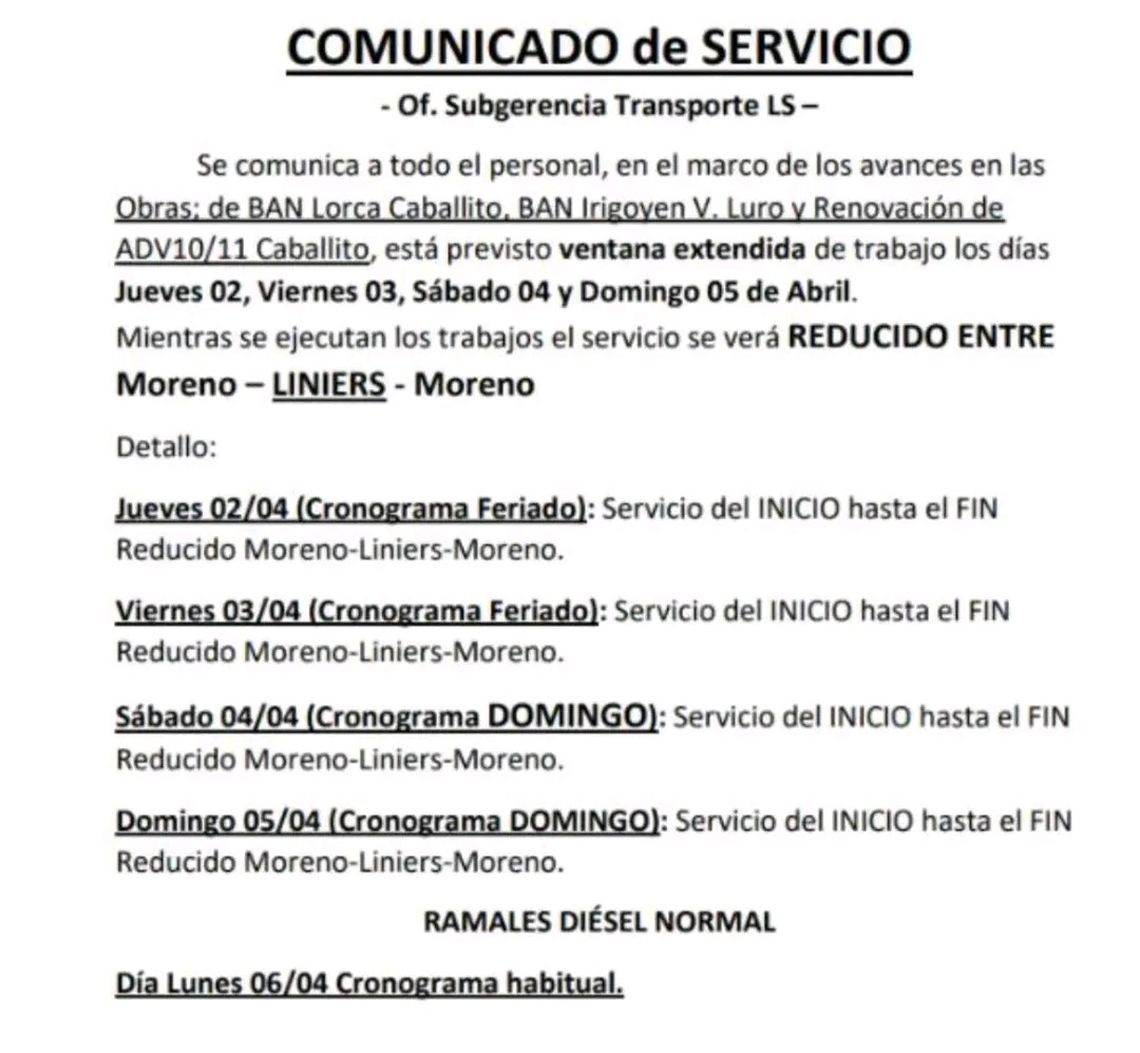 Como viene ocurriendo habitualmente, la novedad se conoció a través de un comunicado interno de Trenes Argentinos difundido a través de las redes sociales: la empresa hasta el momento no efectuó precisión alguna..