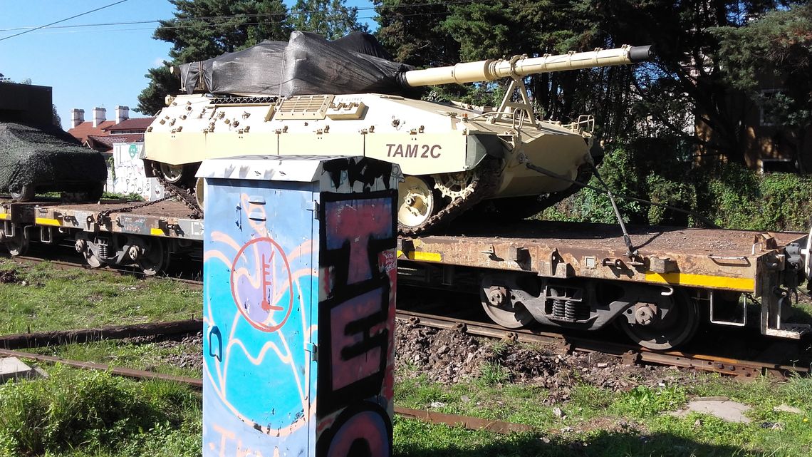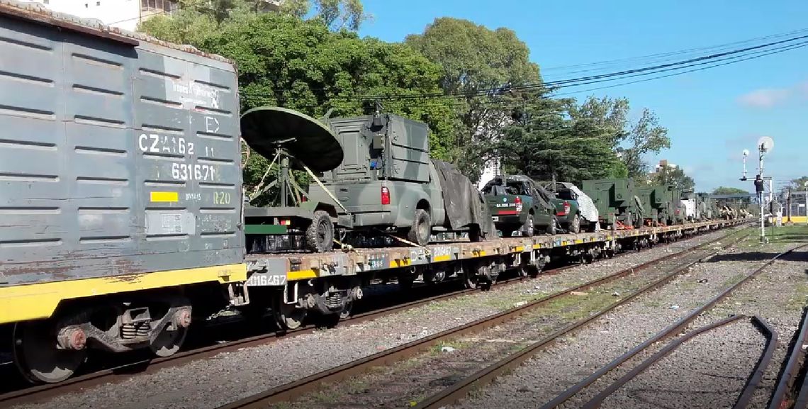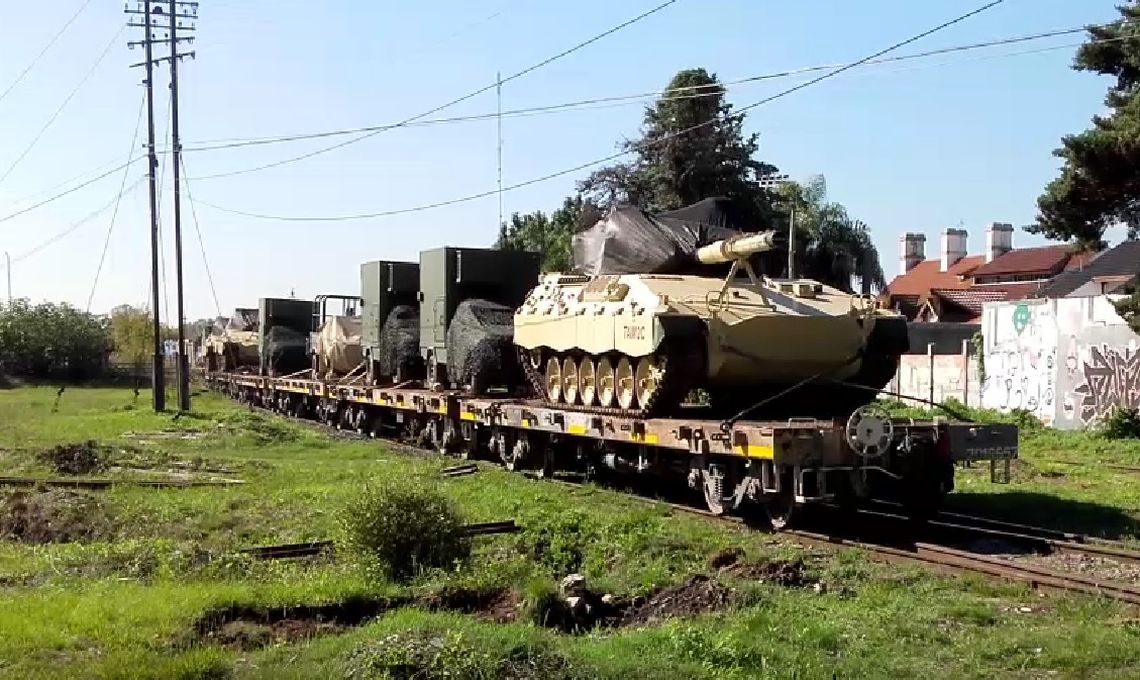 Una formación de Trenes Argentinos Cargas que circuló por la Línea San Martín hoy a media mañana por Caseros, Santos Lugares y Sáenz Peña, en el partido de Tres de Febrero, sorprendió a quienes estaban junto a las vías, ya que transportó distintos vehículos militares, destacándose tres tanques. El destino final del tren es Darwin (en las inmediaciones de Choele-Choel), en la provincia de Río Negro.