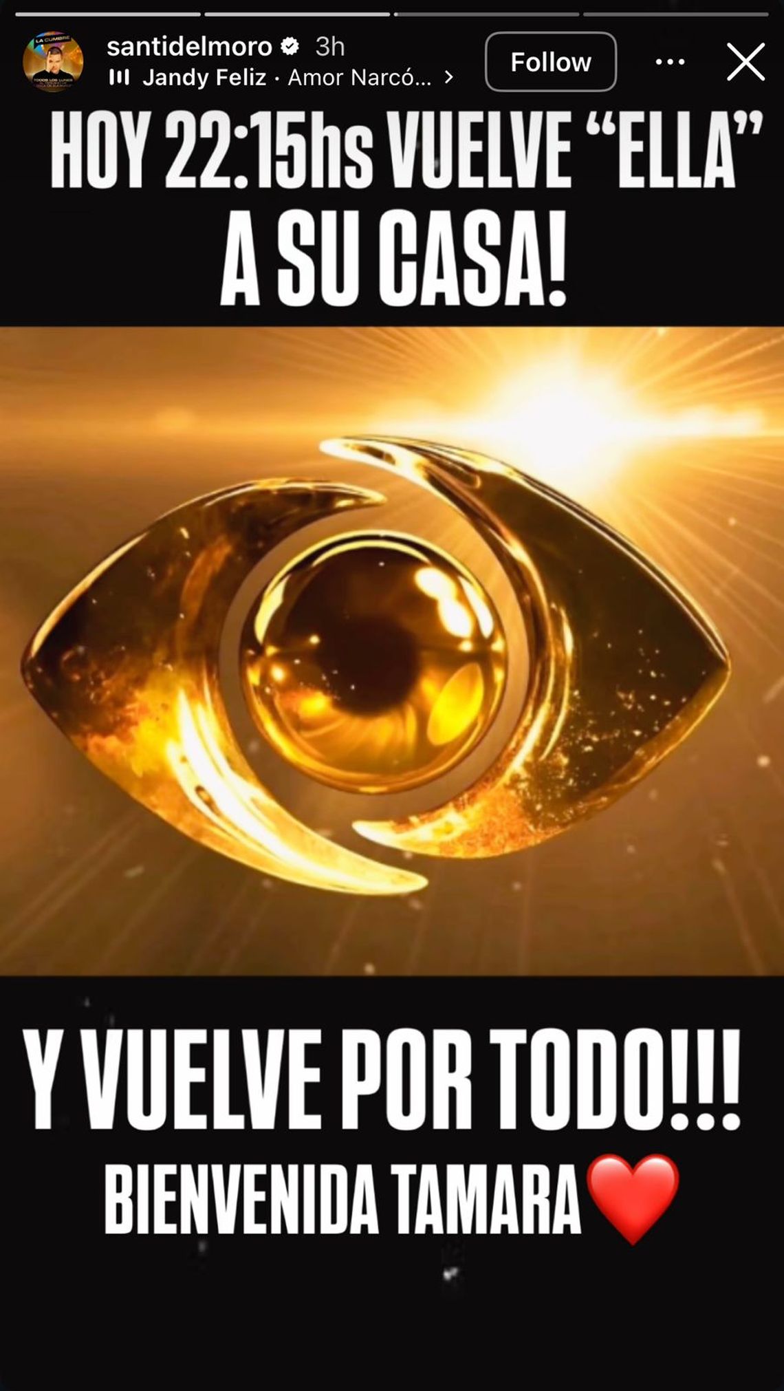 “Hoy 22.15 ¡vuelve ‘ELLA’ a su casa! ¡Y vuelve por todo!”, expresó el conductor en redes sociales. Minutos después, despejó cualquier duda: “Bienvenida Tamara”. Así, se puso fin a los rumores y se oficializó el regreso de una de las figuras más recordadas del programa.
