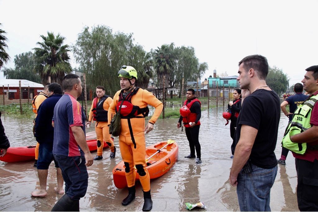 En los barrios más anegados se utilizaron gomones de los Bomberos Voluntarios y canoas del cuerpo de Guardavidas del Municipio, ya que era imposible por tierra llegar a darles asistencia a los vecinos afectados.