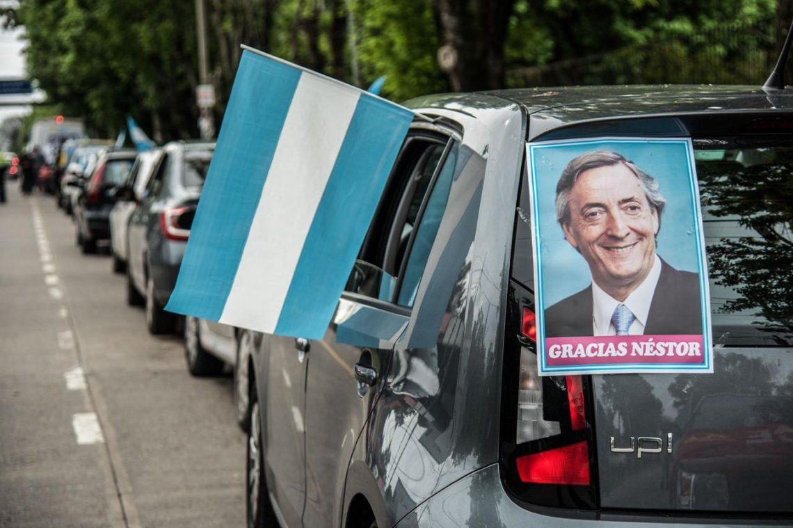 A las 17 horas marchó desde Quilmes una columna de más de 150 autos para hacer un reconocimiento al ex presidente Néstor Kirchner dando unas vueltas por la histórica plaza con carteles con la cara de Néstor y banderas argentinas.