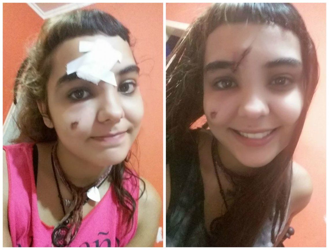 “A mi papá lo tiraron al piso entre tres y le pegaron, mientras que a mí uno de ellos me estrelló la cara contra la pared cuando intenté evitar que le peguen”, agregó la adolescente, quien recibió cuatro puntos de sutura en la frente por la herida que sufrió.