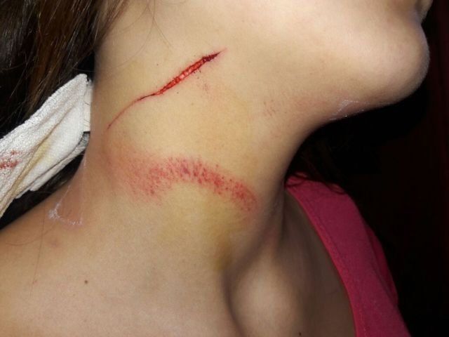 “Se me acercó y me empezó a asfixiar con una mano y con la otra me tenía las dos muñecas”. “¿Te acordás que te dije que si no estás conmigo no estás con nadie? me dijo él. Yo sentí que me moría, no podía respirar. Después fue a la cocina, agarró una especie de hacha y me cortó el cuello”, rememoró la víctima.